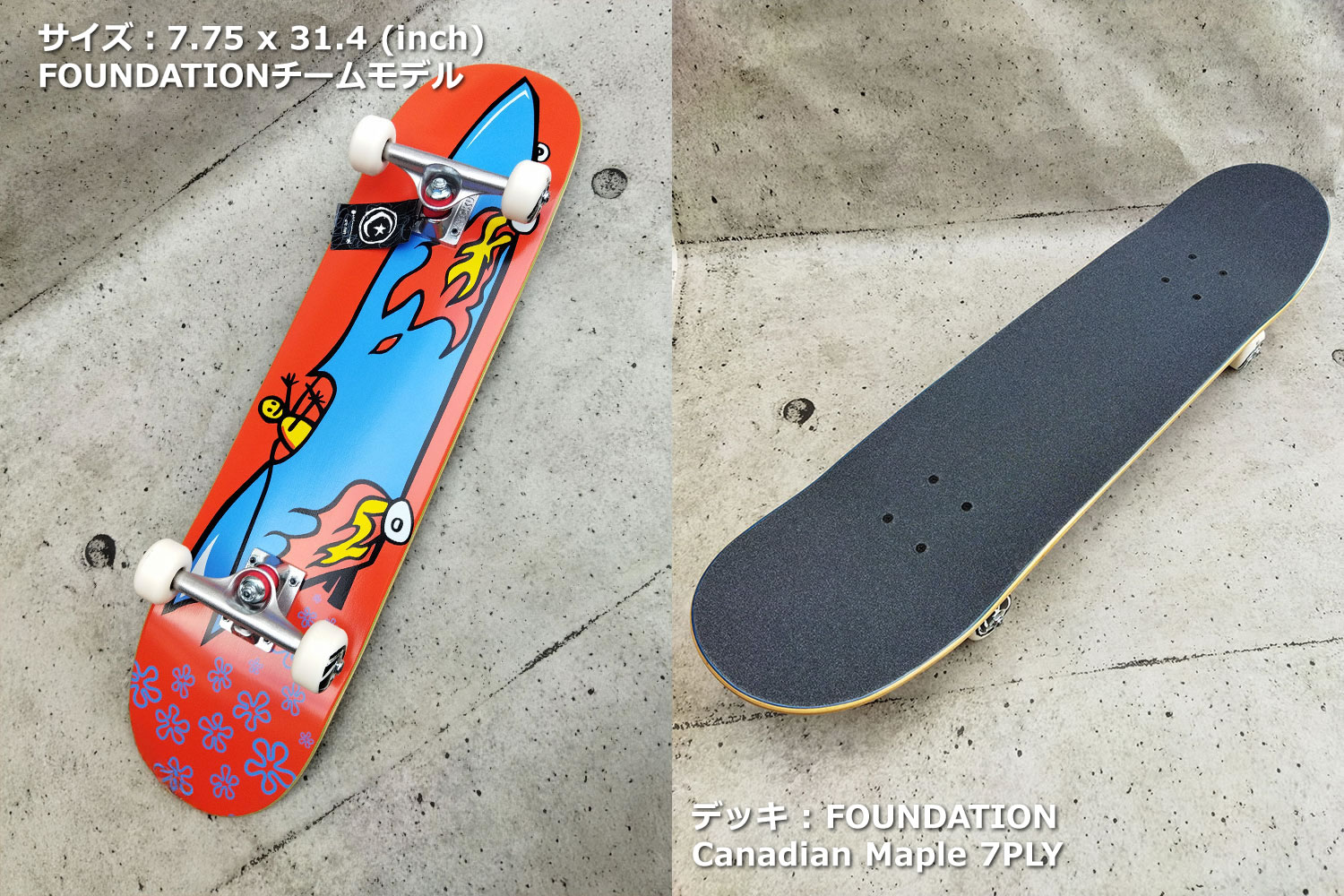 TOY MACHINEやFOUNDATION、PIGを製造しているTUMYETO社ブランドのパーツで組まれているので、スケボー初心者から上級者まで使えるコンプリートです。